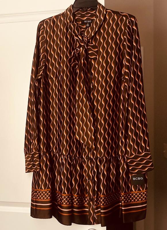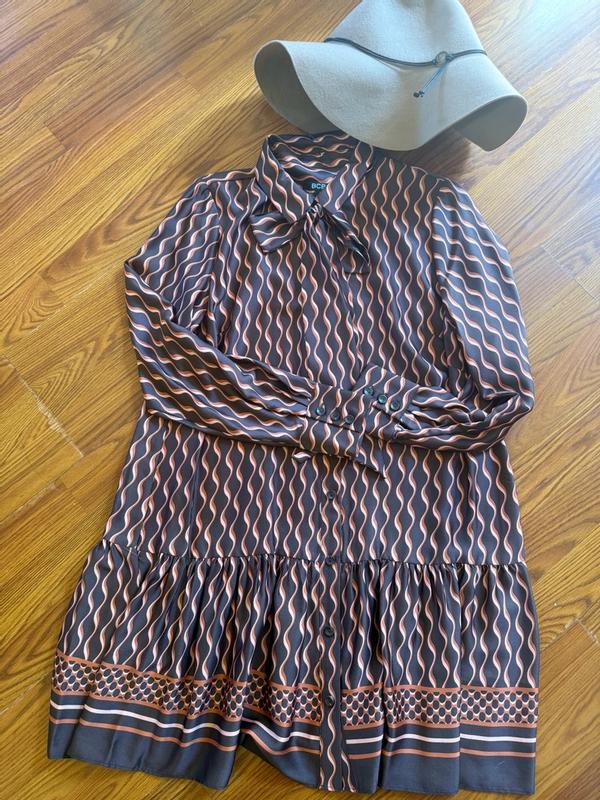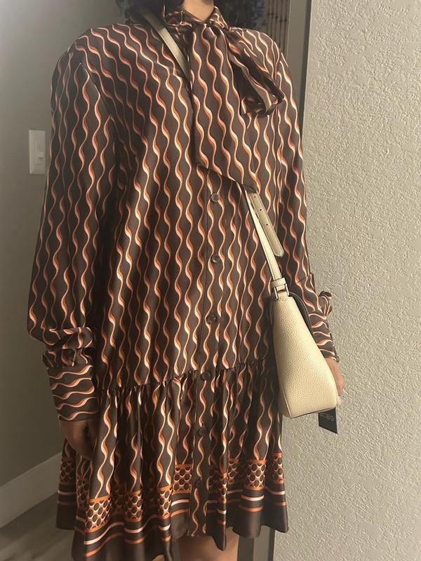 I was sent this women’s BCBG Satin Tie Nevk Long Sleeve Shift Dress from Influenster, in return for my honest review. The material is nice (texture wise) I do love the print and style of the dress. Unfortunately I do not find this flattering on the body how it lays. Unless you are a “toothpick” not curvy like me….this dress is a no-go :(