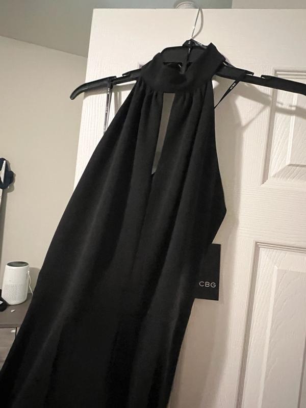 Influenster and BCBG sent me this Scuba Crepe Keyhole Jumpsuit for free in exchange for my honest thoughts. When I pulled this bag out of the shipping box I could tell that quality was taken. The garment was wrapped in plastic and even came with a hanger. The quality of the material on the jumpsuit is durable but elegant. The jumpsuit secured at the waist in the back with a zipper and hinge and at the neck. The sleek design is so beautiful and classy looking. With the cutout chest line and long flow the outfit looks great for parties or a night out to dinner.