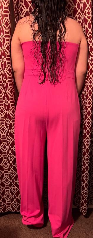 I received this pink Jumpsuit that is beautiful and I can say that it is made with the best quality. The fabric is super soft of the best quality. The cut of the Jumpsuit makes an elegant fall that stands out. I'm normally size XL and the Jumpsuit is size 16 and although I don't have the best figure on my body, I liked the Jumpsuit how it fits my body. It also has some very nice details on the neck and a very nice neckline that although I'm not used to wearing a neckline I can say that it doesn't look bad. The most important thing is that I feel very comfortable.