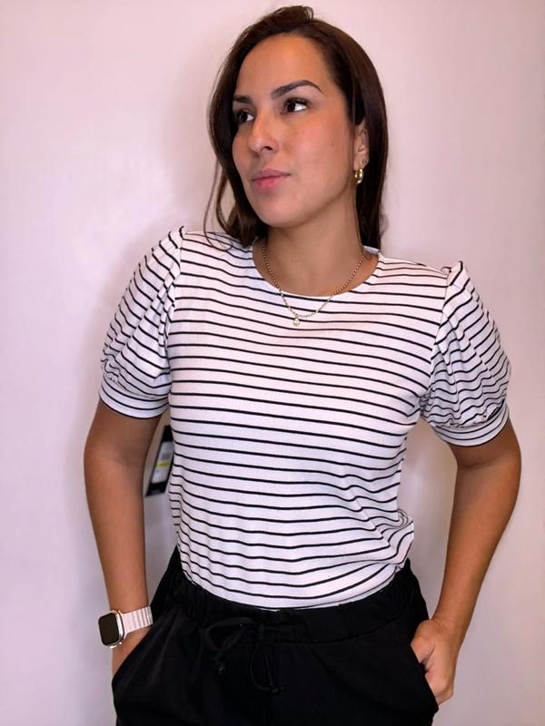 Women's Short Sleeve Stripe Crewneck Top