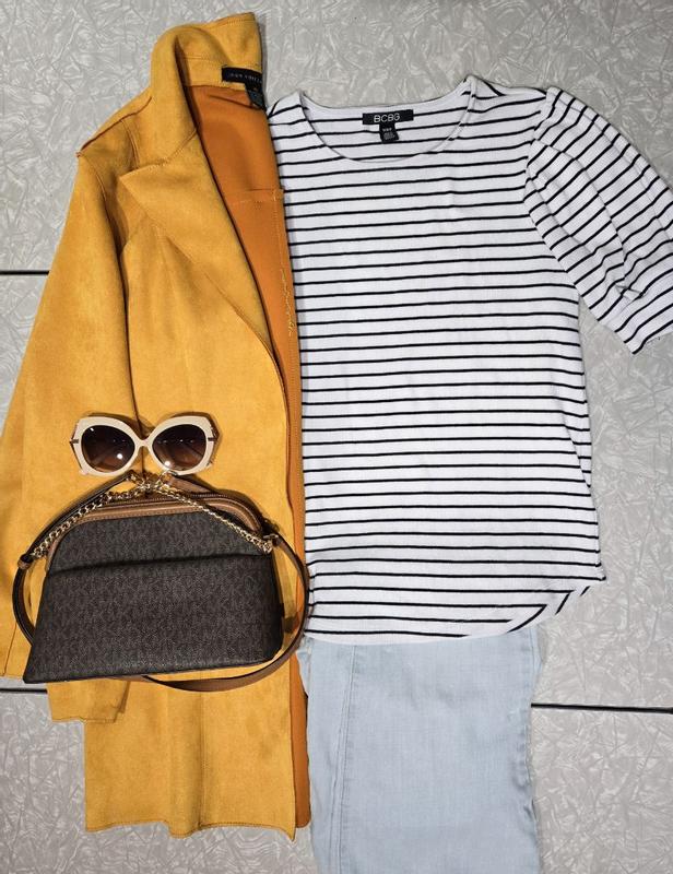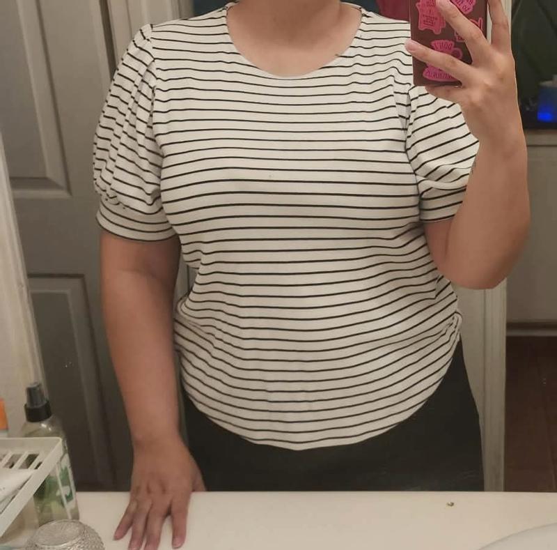 Loved my new BCBG short sleeve striped crew neck knit top. This was very comfortable to wear, nice enough to wear for work and weekend fun. The material was light and durable enough to wear anytime.
