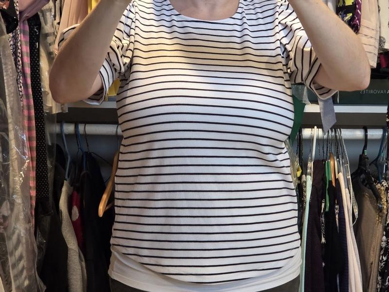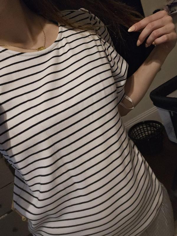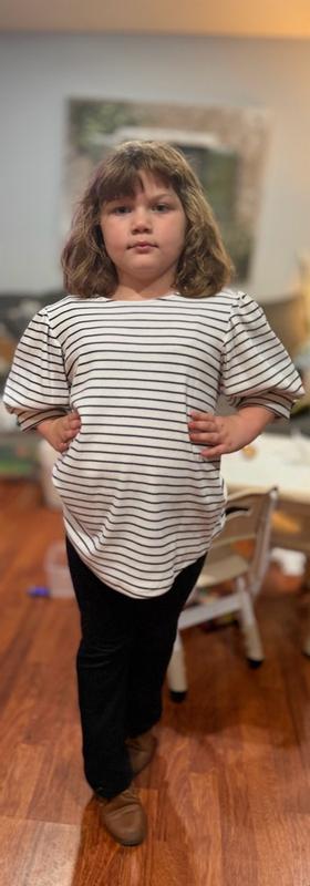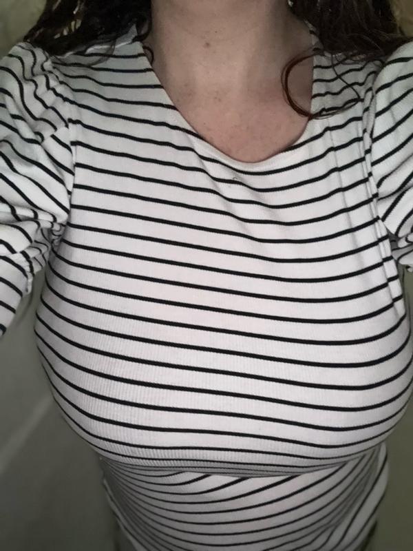 This is actually really cute and comfortable. I love the bubble sleeves and the stripes. After washing the fabric is a lot softer than first try on.
