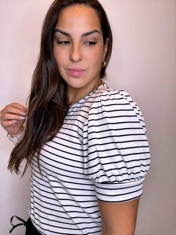 Absolutely obsessed with this BCBG Short Sleeve Striped Crew Neck Knit Top! The fit is super flattering and comfy — perfect for casual days when you still want to look effortlessly chic. The stripes add that timeless touch, and it pairs so easily with jeans or a cute skirt. Definitely a must-have staple in my wardrobe.