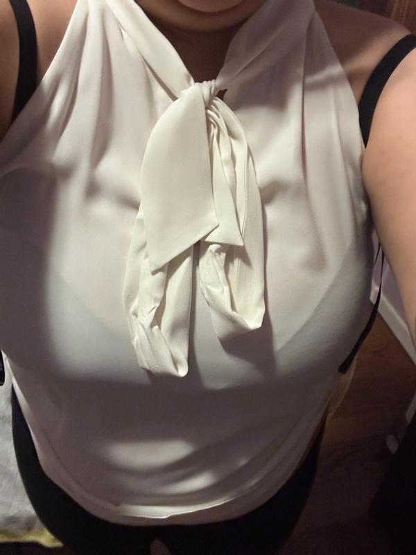 Cute shirt. Very fancy for job interviews how ever it runs small. I would size up or two. A bit see through but it’s nice. I like the tie part where I can make a bow