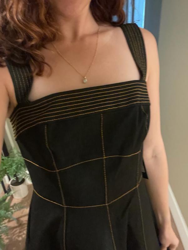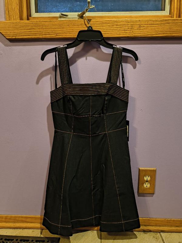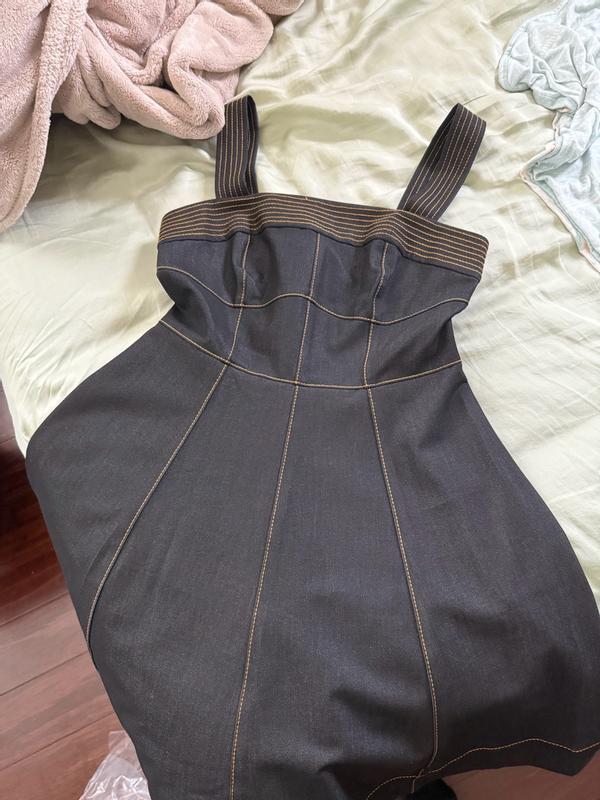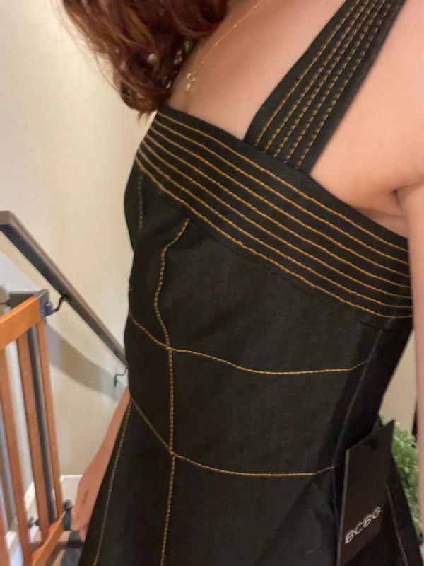 The BCBG Women's Denim Fit-and-Flare dress is super high quality and cute! Made out of sturdy and thick denim with thick stitching, this dress is incredibly well-structured. It is also as comfortable as an all denim dress can be. My biggest complaint is the sizing. I am the exact measurements as the sizing guide on the website and this dress is still far too big for me around the chest. There is a lot of space between the fabric and my chest, making the fit less than ideal. Additionally, the straps are too long and fall off of my shoulders easily. Other than the poor fit, I do love this dress and appreciate that the quality matches the price.