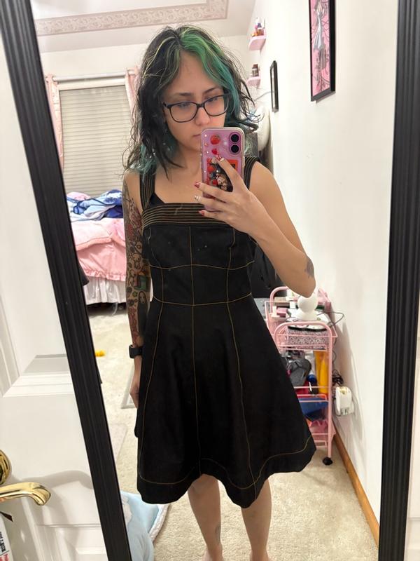I love the style of this denim fit-and-flare dress. I got this dress in a size zero and it fits my waist area perfectly, but as you can see from the photos, the fit in the chest and shoulders isn’t the best. I wish the straps were adjustable because they are too long for me. I also don’t understand why the chest area is so roomy and loose. Usually I would wear a bra to fill in a dress with a looser top, but this dress doesn’t allow for a bra. It might pair well with a long sleeve shirt underneath, but won’t work on its own unless I get the straps adjusted. Overall, I wouldn’t recommend this dress because of the fit issues.