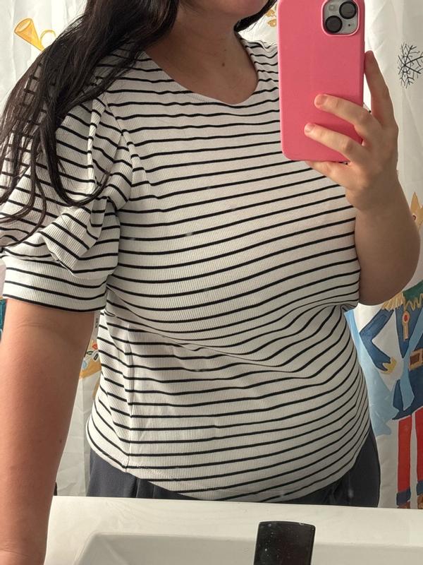 This BCBG top is one of those effortless staples that instantly elevates a casual look. The fit is flattering without feeling tight, and the subtle puff sleeve adds just the right amount of structure and femininity. The fabric feels soft yet substantial, making it comfortable for all-day wear while still looking polished. Easy to dress up or down, it is definitely a timeless piece I’ll reach for often.