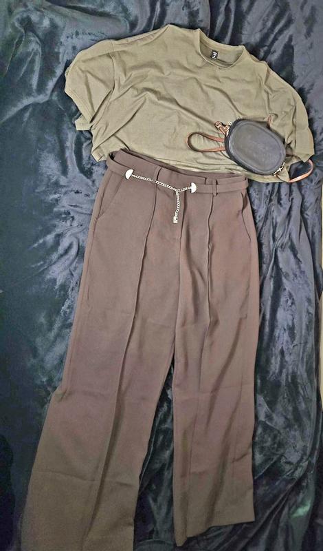 What beautiful pants! I loved the belt with the gold chain detail. Fabric felt thick and high quality. My issue was unfortunately they did not fit around my waist. My size is usually between an 8-10, but this 8 was too tight in the waist.