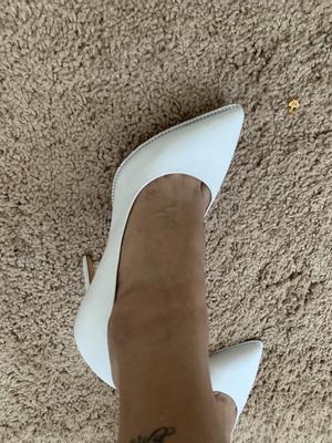 I’m not sure if it’s just my foot, but I wear heels like this daily to work and my heels keep slipping out of the shoes. It’s a little terrifying. I’m not sure if sizing down would work or if that would be super uncomfortable, but I’m googling solutions, because they’re pretty shoes!