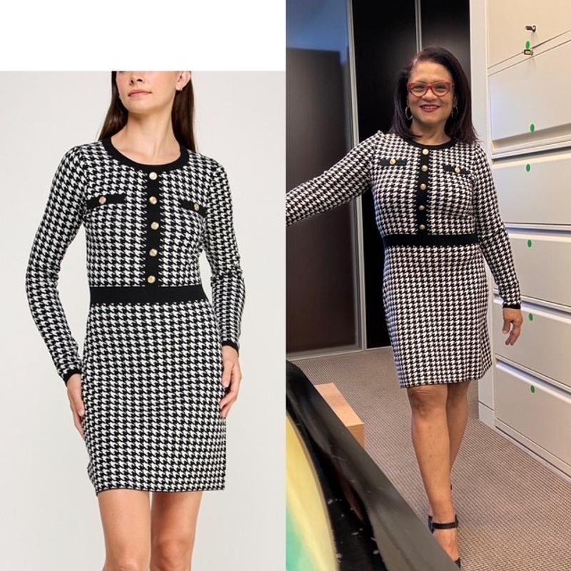 I'm 5 feet tall. So dresses always falls past my knees. Since this was a mini dress I took a chance and it paid off. I love how it fits. It sits right above the knee so it's perfect for petite women. Normally I wear a medium but because it's a junior sizing, I got a large and it fits perfectly.