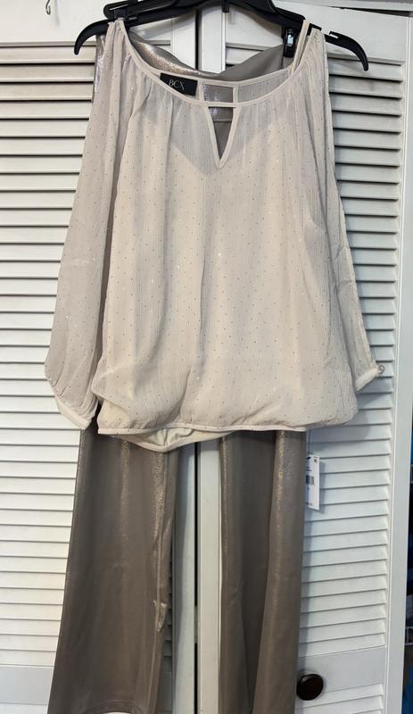 Just bought a brand new shimmery flare pant from Victoria’s Secret, which this top matches perfectly too! a great price and quick shipping.. A++