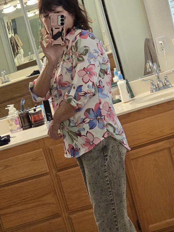 Cute top a little snug, I'm a 36B got a medium but a large would been better.. High, low which I hate, nothing mentioned in the description. Probably will return.