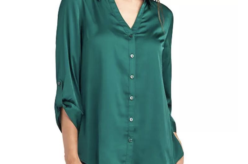 Women's Stretch Satin Button-Up 3/4-Sleeve Top