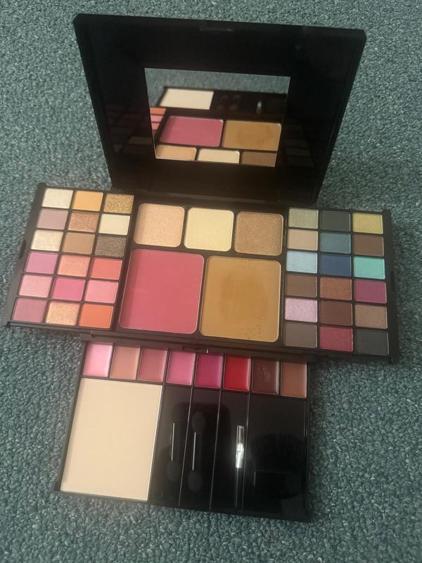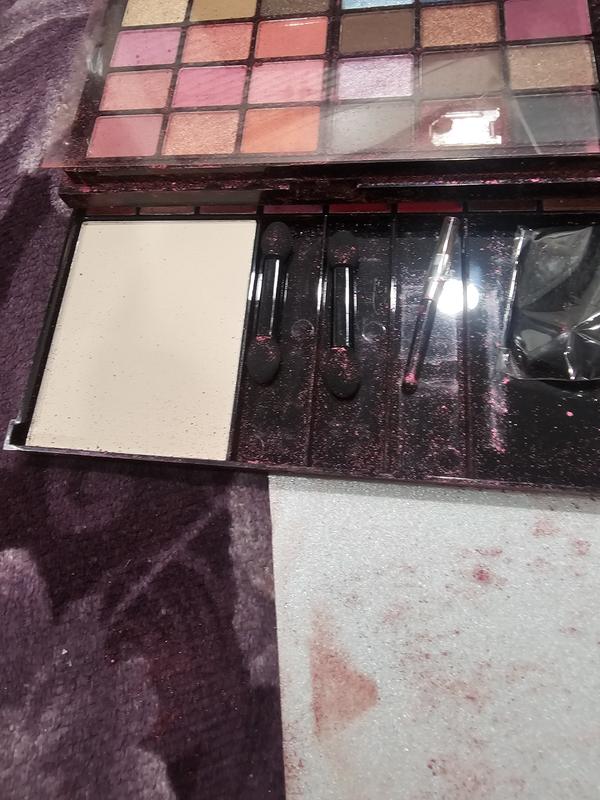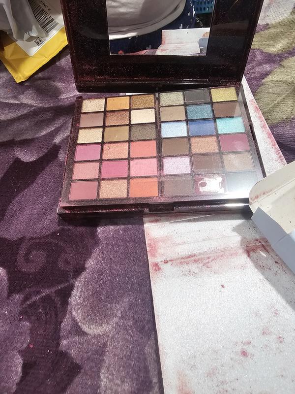 Ordered 2 BOTH arrived with eyeshadows broken and powder everywhere. Nothing wrong with box itself but messy and my favor colors gone. Also very difficult to open. Purchased a larger one last year and LOVED it - this one was small, difficult, and broken