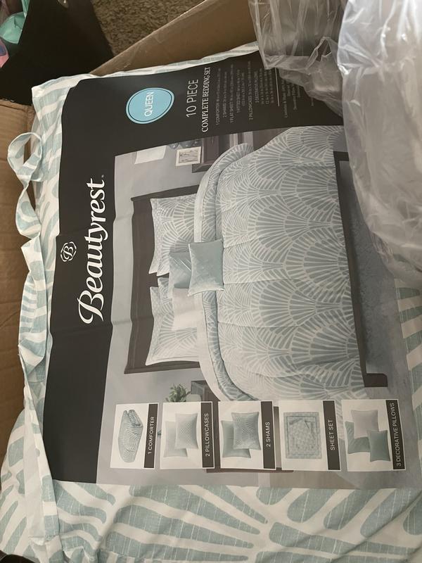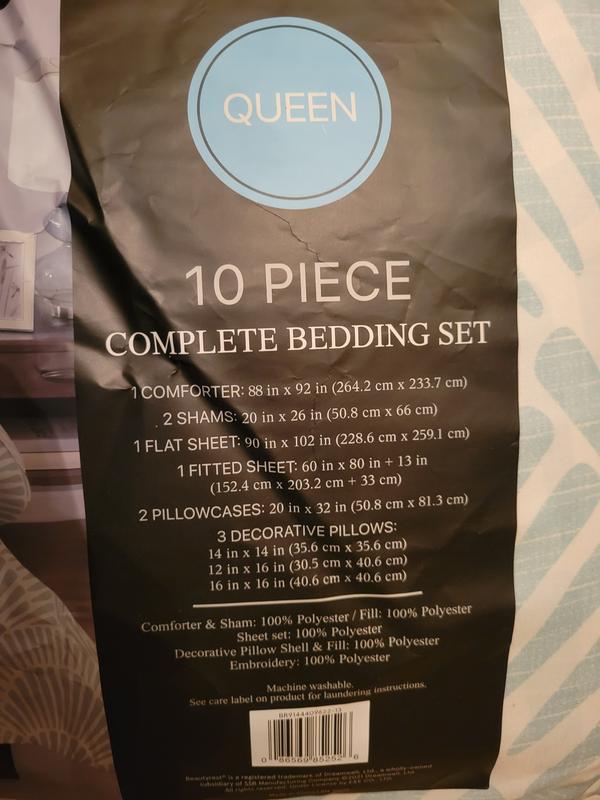 10 piece bedding set is a beautiful luxurious addition to my bedroom. The design is beautiful and match my beach decor perfectly. The included sheets are made well and soft. The comforter is a great quality as well. The added accent pillows are a definite plus for making the bed come together. A must have for gifts or just for yourself.