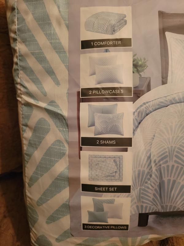 The Conway 10 piece Comforter Set with Sheets was just ok for me. I absolutely loved the pretty green and white color of the Comforter Set. The sheets were not very well made and slipped off of my mattress several times and I eventually just took them off. The Comforter was a nice and lightweight, but it provided just the right amount of warmth and comfort to get a good nights rest. The accent pillows were very pretty, soft, but firm and made the set pop and look great. Overall, this is a pretty comfy Comforter set if you purchase a different set of sheets.