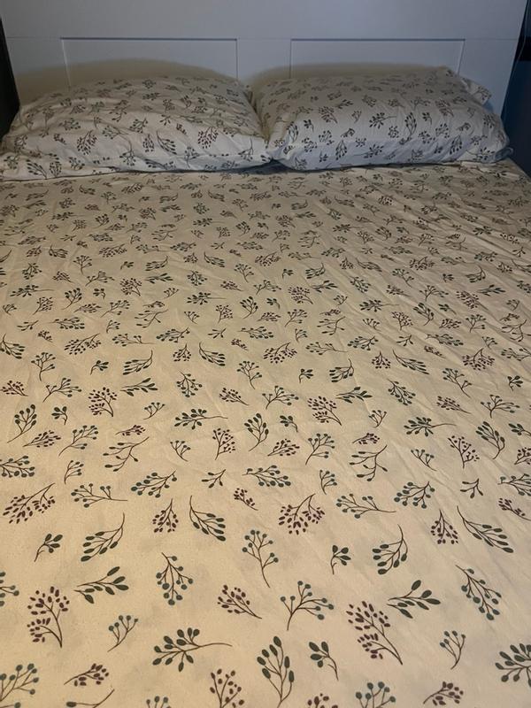 Thank you for sharing your experience with our sheet set. We’re glad to hear the soft, cozy flannel feel and oversized fit worked well with your thicker mattress—this set is crafted from 100% cotton flannel, brushed for exceptional softness and designed with luxury dimensions to accommodate mattresses up to 18" deep, ensuring a secure and comfortable fit. The design you received is our White Tossed Botanical print, one of several patterns available in the collection. We’re sorry to hear about the concerns with the print and fabric condition. While all our products are carefully inspected before packaging, occasional imperfections can occur during manufacturing or handling. Your feedback is greatly appreciated and will be shared with our quality team. Although flannel is a favorite for colder months, it’s also breathable and moisture-wicking, making it suitable for year-round use—especially for those who enjoy a soft, cozy layer even on milder nights. We hope these sheets remain a cozy and reliable part of your bedding.