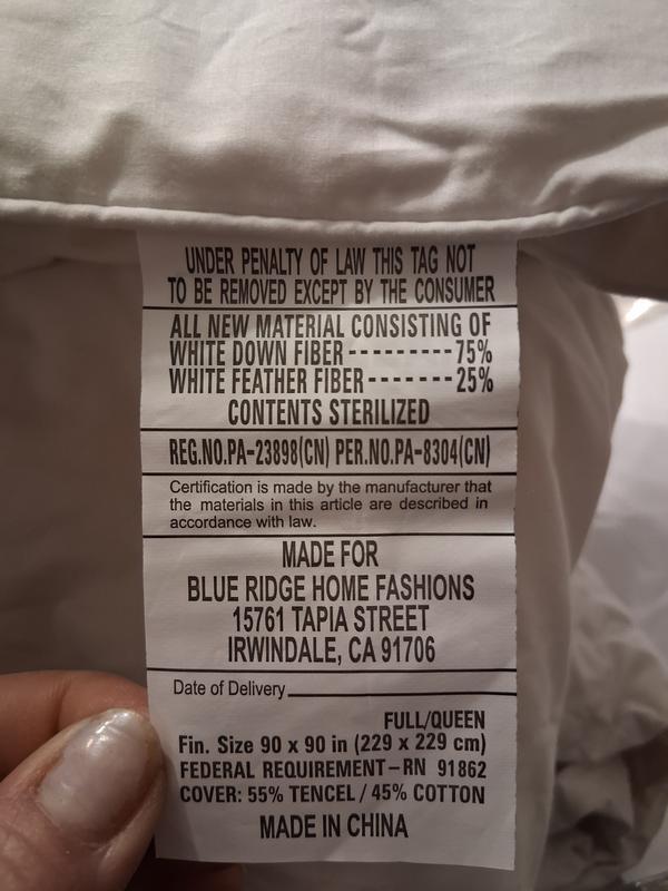 Online product description claims cover is 100% cotton. The packaging for the product says it is a Tencel*/cotton blend, so maybe they sent the wrong product, but not sure since the thread count and feather/down ratio is the same as the online description. The tag on the actual comforter says 55% Tencel*/45% cotton. I purchased as a Last Act/ Final Sale product, but hopefully they will let me return since it is not 100% cotton. It seems like it would be a great comforter-I have never opened it other than to check the tag or slept on it, because I have been having sensitivity issues with other fabrics and was looking only for 100% cotton. One star only is because it doesn’t match the description online. Very disappointed. Nothing to do with the quality, but I order 100% cotton and I receive something that is only 45% cotton, I should only have to pay for 45% of my order.