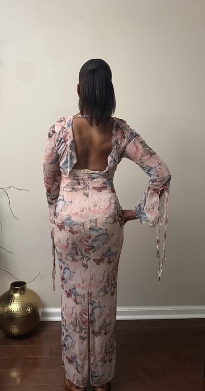 The long sleeves add a touch of modesty, while the maxi length creates a dramatic, chic look.