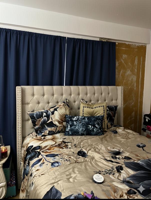 This contemporary version of a traditional look pairs a large, glorious floral on the front with a handsome plaid on the reverse, all in comforting tones of steel blue, soft beige and creamy ivory colors. The Bebejan English Manor 5 Piece Reversible Comforter Set is enhanced with a steel blue floral printed oblong pillow, as well as a square pillow, tufted with a plaid covered button, and embroidered with a floral frame. This 100% cotton sateen 5 piece set includes 2 shams, an 18" x 18" embroidered pillow, and a 22" x 12" printed pillow.