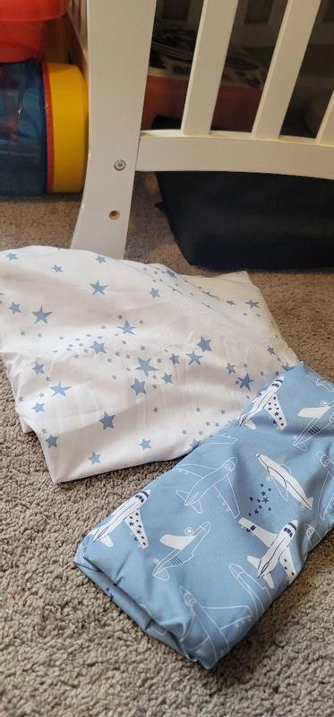 The airplane and star fitted sheets fit perfectly on my son’s crib, the designs looked really nice and the sheet was soft to the touch. They didn’t feel rough or scratchy, they’re very light weight so my son slept very comfortably.