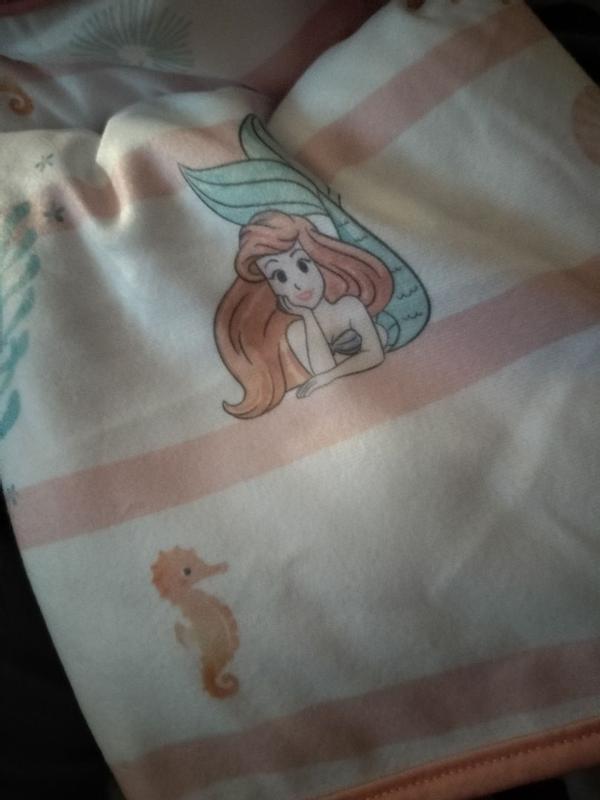 originally we were going to wait to give this to our daughter on Christmas morning as a surprise because she’s been asking for a new blanket for Christmas but we agreed since she’s been asking since last year we gave it to her early and I would say she was definitely super happy. She was super excited when she turned around and seen the blanket. She was immediately drawn to it and she is still using it now laying with it on the couch. The material is unlike any other materials actually ever felt it is so soft but it’s also durable like you can tell it’s a heavy duty blank yet it’ll keep her warm. growing up the little mermaid was one of my favorite movies as a child. Now I get to experience that all over again with my daughter and I’m super excited to share the little mermaid with her and this blanket represents that. 💖🫶🧜♀️
