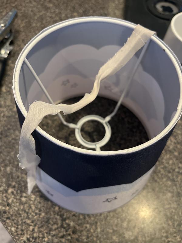 giving this a one star only because zero stars is not an option opened it to find that the taping/trim at the top of the lampshade was torn and disfigured will probably just have to hot glue it, but this is not what was expected nor paid for.