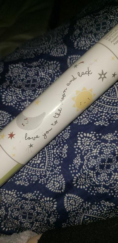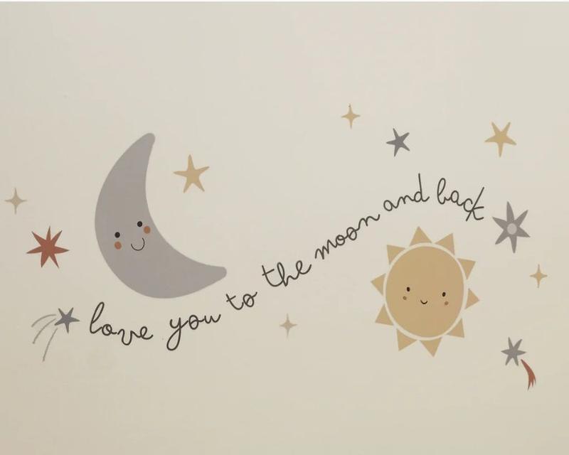I’m loving the little star wall decal. The font and the actual sun and moon are very cute. The colors are so cute and the wording is so cute. Can’t wait to actually put it in the wall and make his room so cute. I was expecting a small wall decal but this one is a very good size