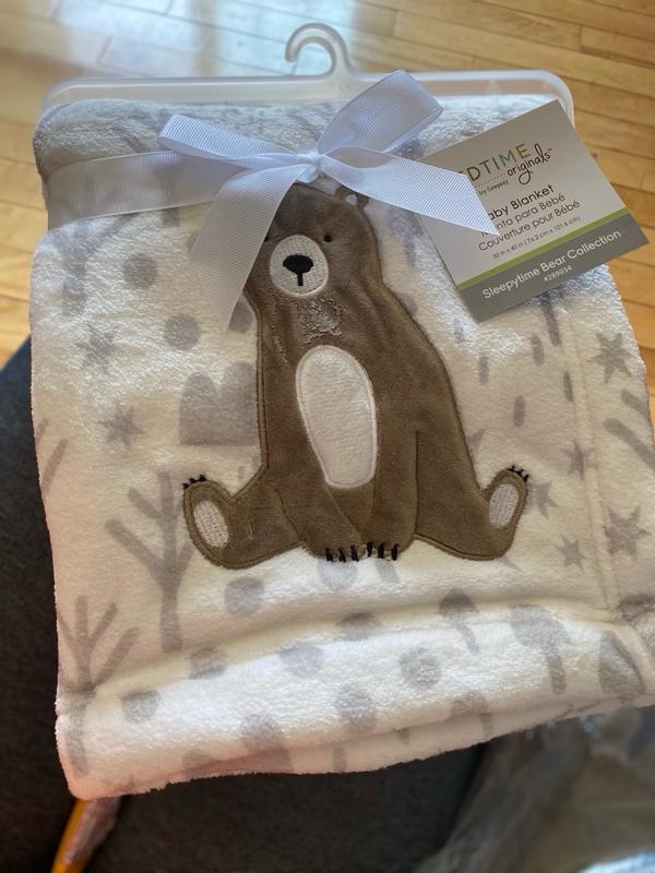 Sleepytime Bear White/Brown Soft Fleece Baby Blanket