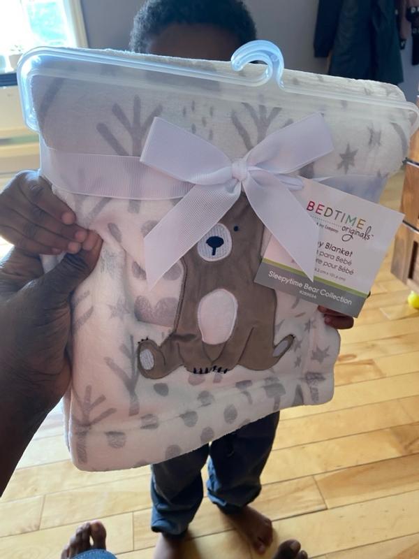 This baby blanket is so soft and cute. I love the little bear on it. I also like you can use it for a baby boy or baby girl. It is a good size. And very durable. It will keep your baby warm and seems to have great quality, even after being washed