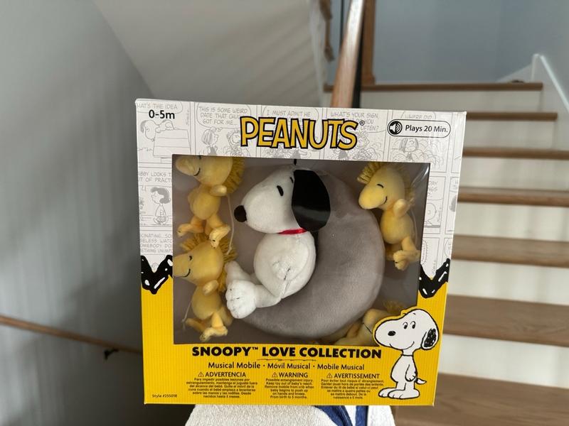 This is the sweetest little peanuts baby mobile! I am not a fan of anything heavy or hard, on the off chance it were to fall. This is perfect and plush!