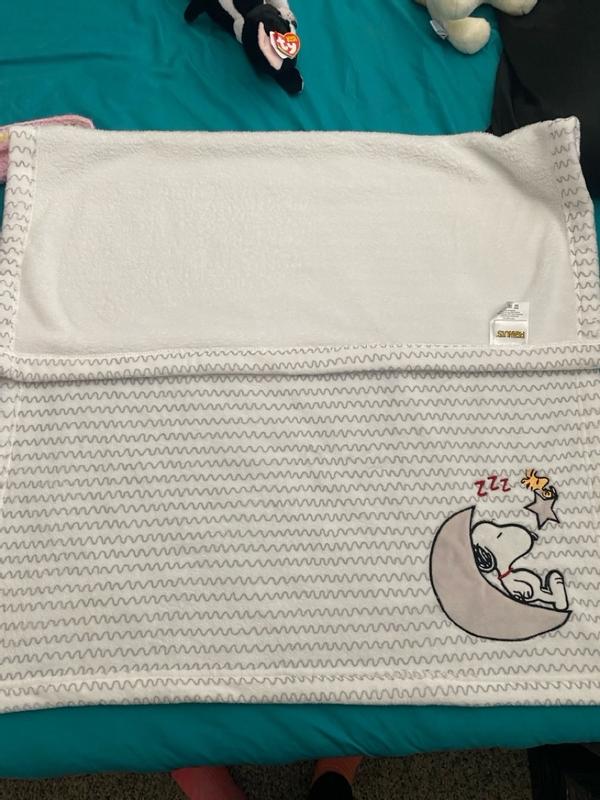 Snoopy Love Soft White/Taupe Fleece Baby Blanket w/ Applique