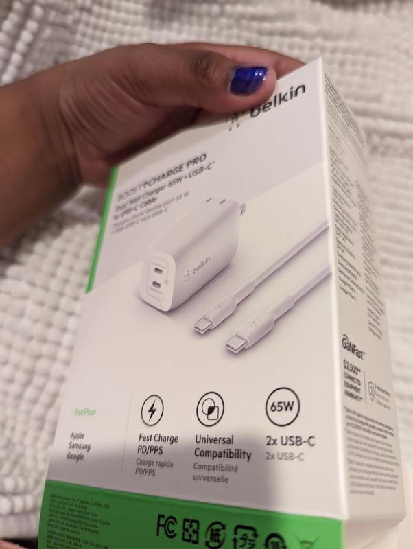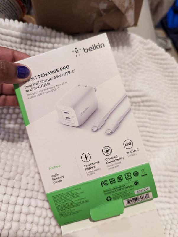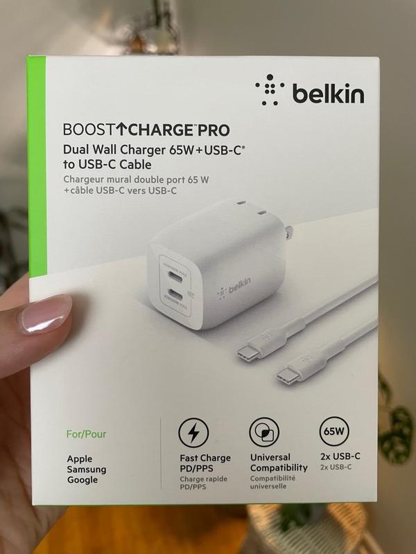 BelkinBoostCharge Pro Dual USB-C GaN Wall Charger with PPS 65W and USB-C to USB-C Cable