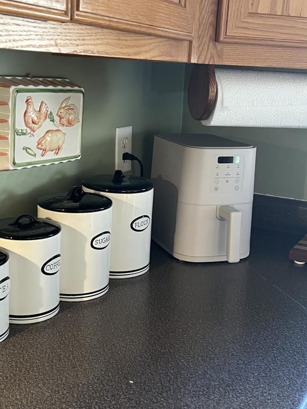 This air fryer replaced a 2 quart one but because of its slim design there js still plenty of counter space in my small kitchen. Also very quiet and easy to operate the digital controls.