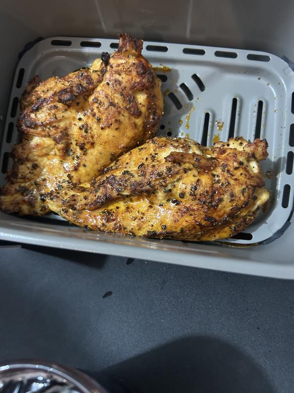 This product takes up a very small amount of space despite having enough capacity to cook for myself. I live alone, so I can't say how effective it would be for a family but probably good for two people. At least for some of the things I've tried so far, such as air frying sweet potatoes, chicken, and Tempeh. All of those things came out great. The potatoes and Tempeh were nice and crispy and the chicken was juicy. I also have used it for melting cheese on toast, which is perfect for me because I usually want two slices with milk the cheese. It might be problematic to do that particular recipe for a larger number of people. I'm also looking forward to experimenting cooking things like grilled cheese with mayonnaise on the Bread or French toast. Supposedly, it's best to use parchment paper for those recipes. In the case of grilled cheese, I would be able to make two sandwiches at the same time. For French toast again, it feels like something that's better for one. Although, how much French toast can you make it once in a frying pan? I plan to try salmon tomorrow and I'm expecting it will work out well.