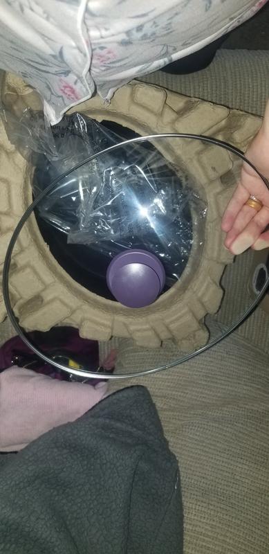 Handle keeps coming off. This is a major flaw. The outside is a dark plum color, and the pot is eggplant color. Nothing wrong with that. However, the issue with the turn knob repeatedly coming off is a major problem.