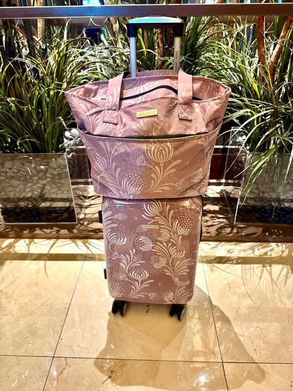 The Bella Caronia 7-pc. Expanding Rolling Hardside Spinner Luggage Set is really cute and definitely stands out style wise, but the quality leaves a bit to be desired. The outer shell looks nice but doesn’t feel as sturdy or protective as I’d like for travel, especially when you know bags can get tossed around. Inside, the organization is pretty limited since there aren’t many built-in pockets to help separate things, which makes packing a little less convenient. It works if you’re just looking for a fun and lightweight luggage set, but if durability and functionality are top priorities, this one might not fully deliver.