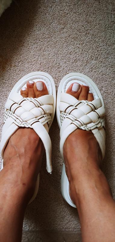 I loved the leather, the style and the simple look of these classically styled slides. The fit was another question - I had to sadly, return these due to the fact that the toe area was much too narrow, and I usually never have that type of problem. I am a perfect 8, sometimes a 7.5 medium in sandals or slides, and this goes for narrower Italian made shoes. The color - natural - was gorgeous - the fit too tight across the toes to wear comfortably. Maybe it was the pair I received, as if tried on in a store, I would have tried on a few pairs of the same to feel the difference. I iwsh it had fit properly.