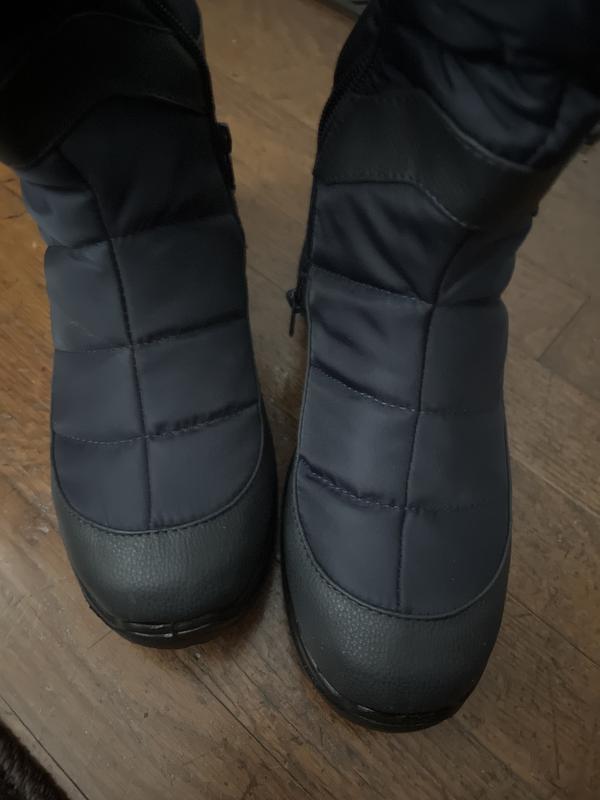 I bought these online hurriedly before the 20" of snow that finally did arrive last night. I spent 9 hours clearing snow, while it was coming down hard and blowing around, sinking in to 3' snow drifts. My feet stayed completely try and although the weather was 'feels like' 5 degrees, feet were warm. The zipper makes them easy to get on off, and they dried (outside ) quickly for the next round. great purchase. Very happy with them. I bought a wide to accomodate my older feet and there was no pressure. no need to add a picture - they look just like the web page.