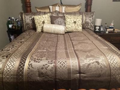 Have a California King Bed. Comforter size I ordered is A cal king. Runs way too small. Comfortable barely covers top of mattress
