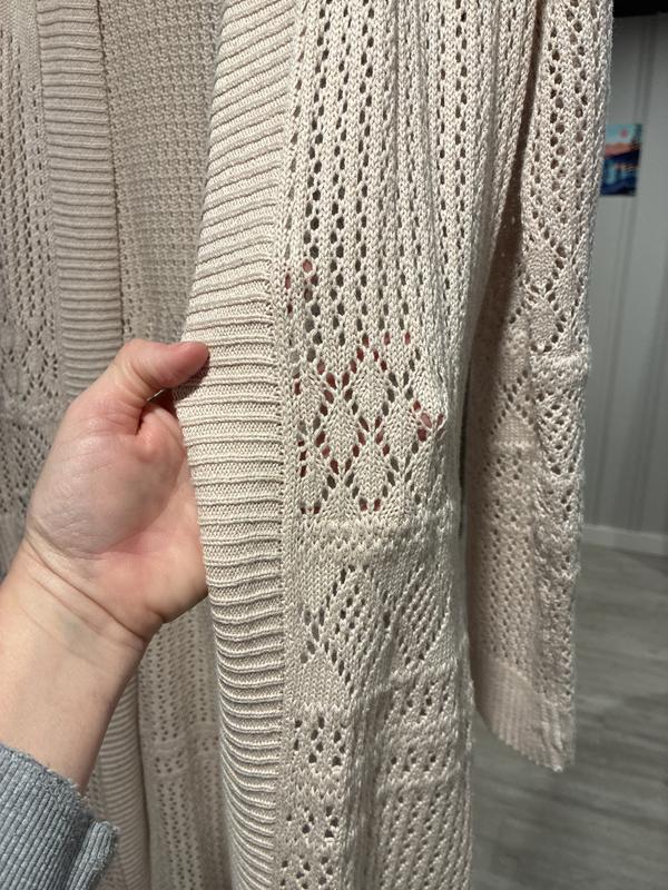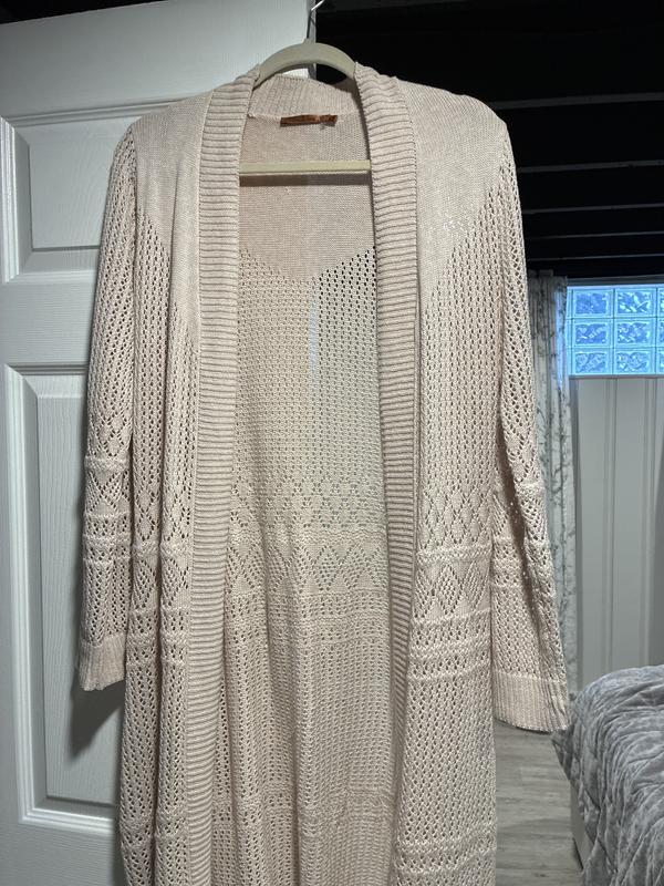 I am really happy with this duster, it's beautiful and seems well made. It's really versatile and goes with just about anything from heels to sneakers. I bought it in the oatmeal or cream (?) color.
