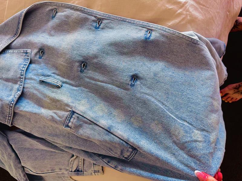 I have purchased this coat on 3 different occasions, and on every occasion this coat has have a a big yellow square shaped stain that resembles sun bleach. The coat comes pre packaged in a bag that may influence this but coats are not quality checked prior to sending. On successfully returning and repurchasing this a number of times - because the jacket style is cute ! - I reached out to the support team and offered photos of the fault, only to be entirely dismissed and advised it was a design feature. Extremely frustrating for any customer but especially one who has worked in fashion retail, and can clearly tell the difference between design and manufacturing fault. It’s a square/rectangle yellow bleach stain about A4 size on the very front of a pale wash denim jacket - I would be concerned if this was done purposely. Extremely disappointing and likely would not shop through here again due to the management of the issue.