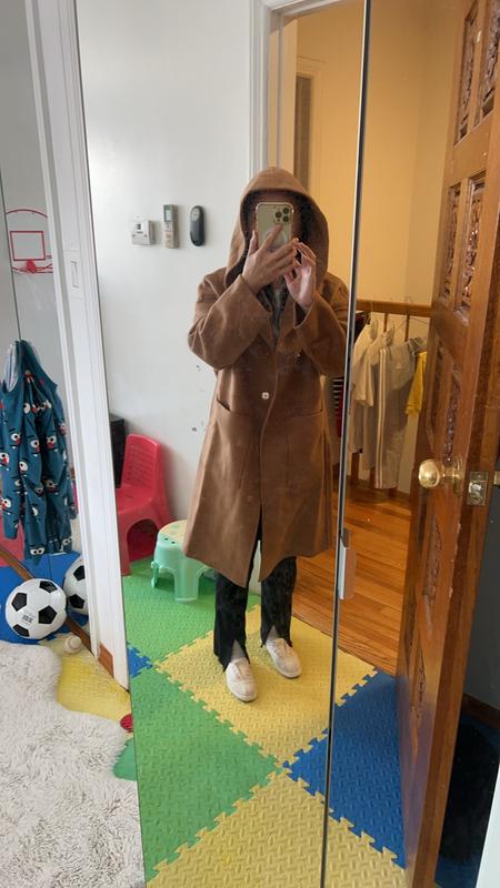 Beautiful coat overall! The hood is a great touch and the style is very chic and versatile. The wool is softer than expected and it looks great layered over different outfits. The fabric is a bit thinner than I anticipated and it arrived somewhat wrinkled, but it still looks lovely once styled. A great piece for mild winter or fall days and easy to wear with everything.