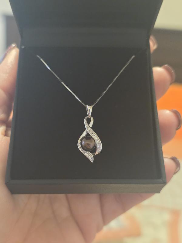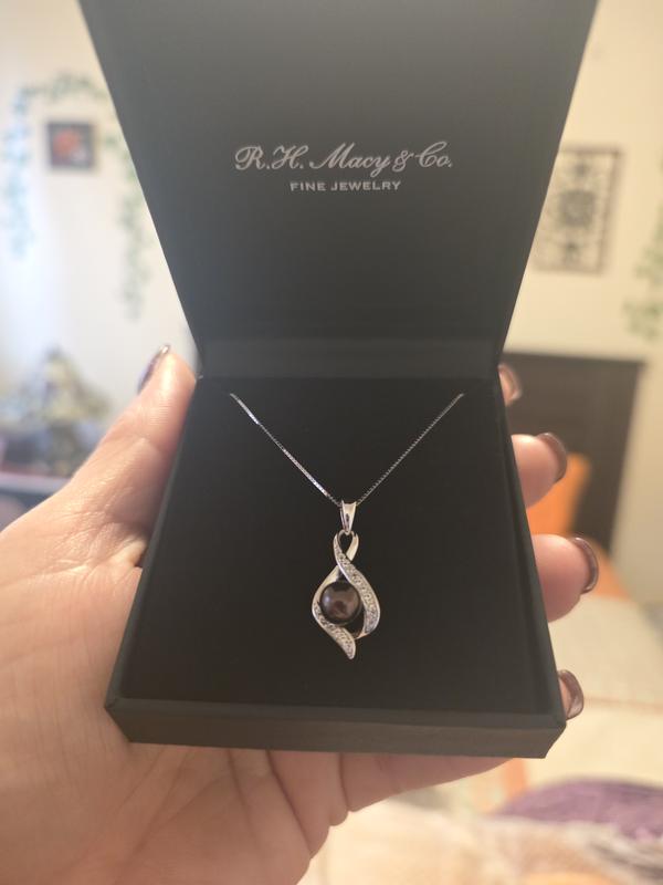 Dyed Black Peacock Cultured Freshwater Pearl (6-7mm) & Lab Created White Sapphire (1/6 ct. t.w.) Pendant 18" Necklace in Sterling Silver (Also in Blush Pink)