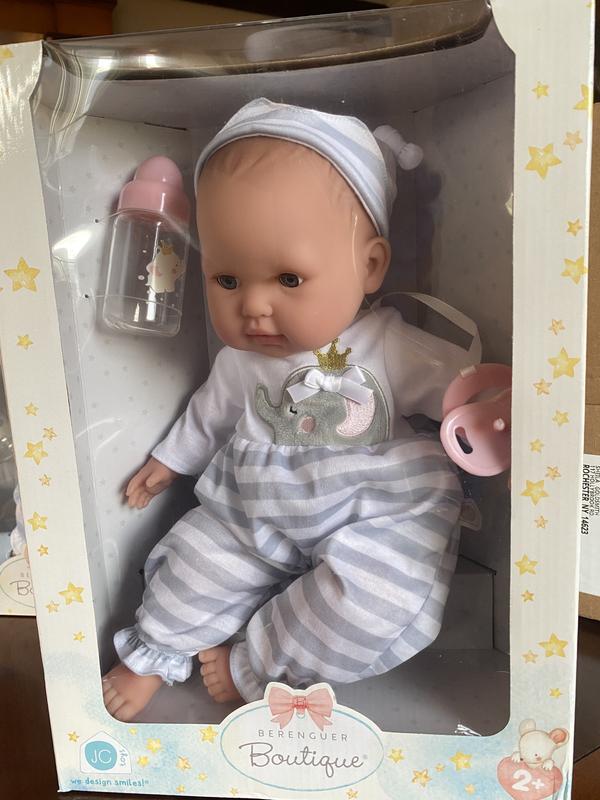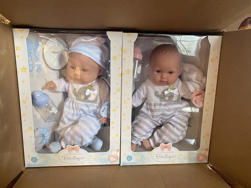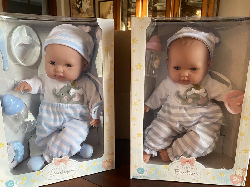 My first time seeing this adorable baby doll online! I fell in love with two dolls by Berenguer Boutique! I was a bit timid at first, until I read other reviews and it reflected on a similar doll when I was a child (by Fisher Price-“Baby Beth”)! I was questioning the eye movements and the fact it didn’t have artificial hair. But, their adorable faces and the pros out weigh the cons! So I treated myself in the gray outfit (labeled purple)! The second was a bit more in cost due to the extra cute accessories! Totally worth it! I love the soft middle body! Easy to wipe off the face, arms and legs. It’s definitely a collectible item! For doll collectors, a little girl or boy at any age! Someday I’ll get the fraternal twins set of brother and sister! 💙💖🥰 well packaged, lightweight, easy to clean the exterior of the bodies!