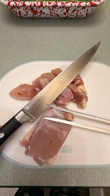 The Berghoff Sanj Tuco 7-inch knife has quickly become one of my favorite daily workhorses in the kitchen. Right out of the box, the balance feels great in hand, the grip is comfortable and ergonomic, with just enough heft to feel secure without being heavy. It gives you confidence whether you’re slicing vegetables or tackling protein, and I appreciate how intuitive it feels after just a few uses. In terms of construction, the blade is well-crafted with a sharp, precise edge that holds up through regular kitchen tasks. The steel feels durable and resilient, and the tapering toward the tip gives it a nice blend of control and versatility. Whether I’m doing thin slices or a quick chop, it stays reliable and responsive. Maintenance and cleaning have been really straightforward. Because of the quality materials and finish, the knife rinses clean easily and doesn’t seem prone to staining or spotting, even after cutting acidic ingredients like tomatoes. I always hand-wash with warm, soapy water and dry it promptly, and that routine keeps it looking fresh and performing well without any rusting or dulling. The blade itself feels sharp and true, it cuts smoothly through a variety of foods with minimal resistance, and it takes and holds an edge nicely between sharpenings. I haven’t noticed it rolling or dulling quickly, which saves time on upkeep and makes it a reliable go-to during meal prep.