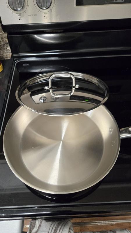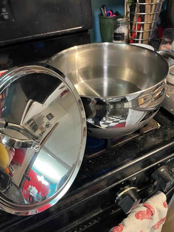 This skillet is nicely designed and well made, the thick stainless steel feels heavy and solid., and the layered base heats up evenly on my gas stove. The size of this pan is perfect for a small portion of pasta, some rice or a soup. So far this is my favorite pan is my kitchen