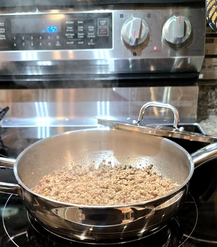 We have a glass top stove and I'm picky about what cookware I use. The BergHOFF Belly Shape Skillet is a great size and has a nice weight to it. It has a 3 layer base that works with any cooktop. It has a comfy handle and built in measurements for convenience. It cooks evenly and can be used in the oven up to 440°. We made tacos this evening and my ground beef didn't stick at all. It's easy to clean and is dishwasher safe.