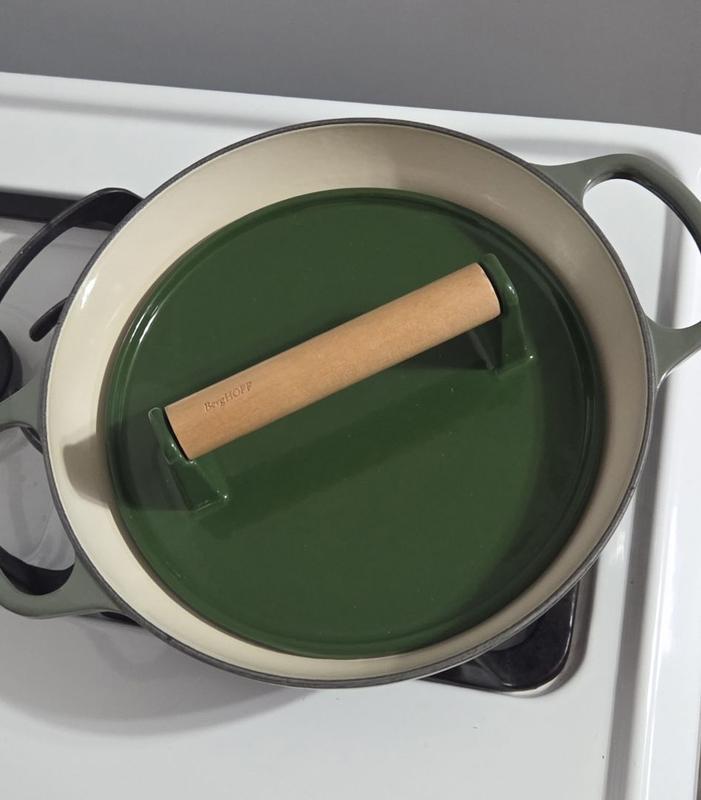 I’ve been using the BergHOFF Neo Cast Iron Steak Press and it’s honestly such a game changer in the kitchen. It has a nice heavy weight to it, which is perfect for getting an even sear on steaks, burgers, bacon, and even grilled sandwiches. The cast iron heats evenly and helps lock in flavor without overcooking. I also love the wooden handle—it stays cool and feels sturdy in your hand. Cleanup has been easy with proper seasoning, and the green color is a fun bonus that looks great with my cookware. This is a solid, well-made tool that I’ll definitely keep reaching for when cooking on the stove or grill.