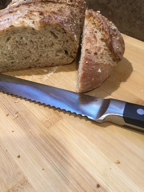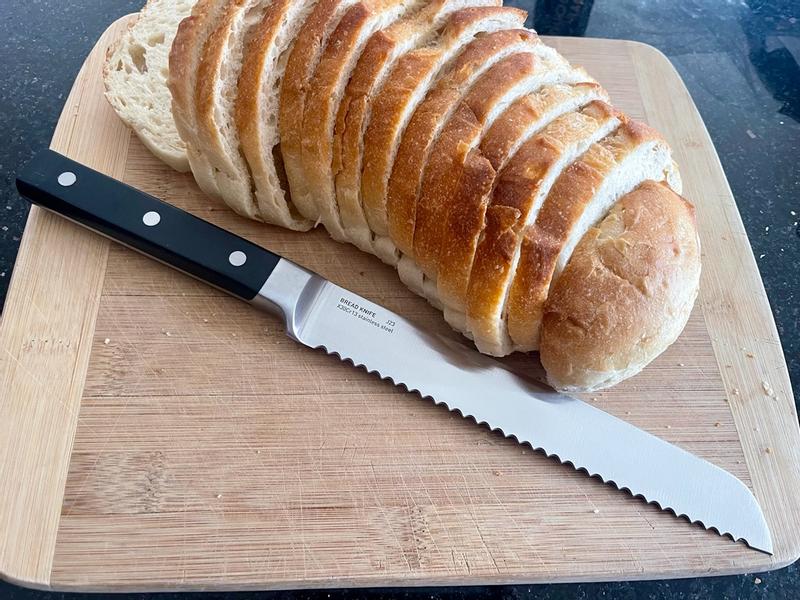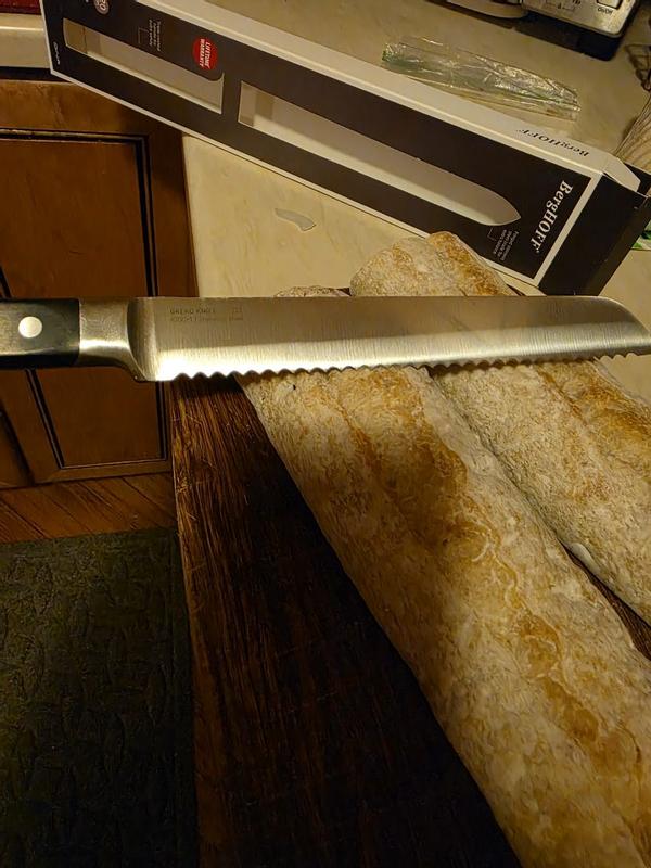 Extremely sharp and beautiful bread knife. Perfect length and balance, sharp enough to cut even and precise slices every time. Feels very sturdy and seems to be very well-made. Would definitely recommend.